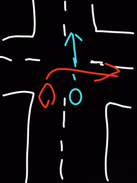 直接在阿肥車頭貼著右轉
