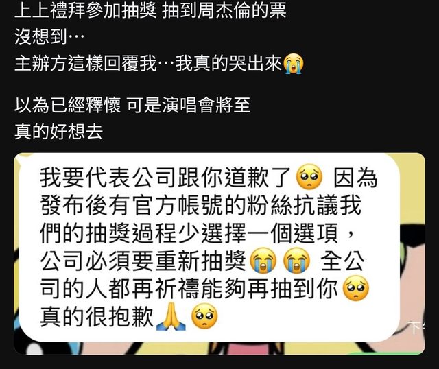 標題[姆咪] 我代表公司祈禱你能再次抽到周杰倫門票