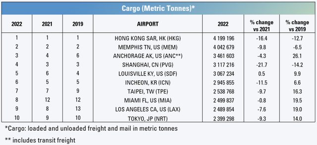 If domestic volumes are added, here is the top 10; and APAC has 5 (HKG, PVG, ICN