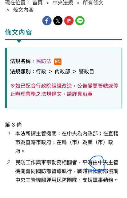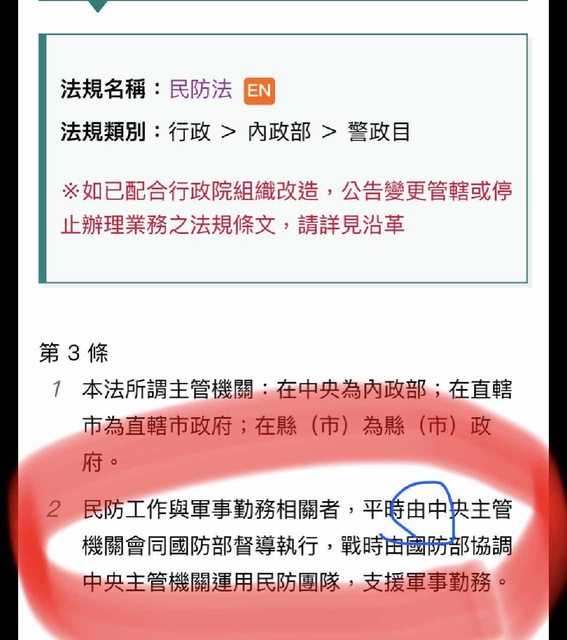 推 ntnusleep : 民防法第2條的民防工作範圍裡有"支援軍事勤務" 11/22 23:44