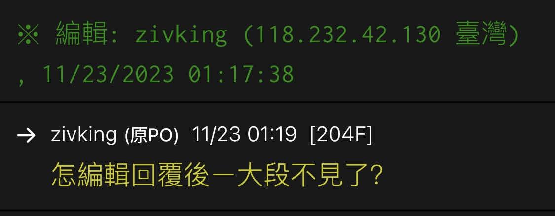 → zivking : 怎編輯回覆後ㄧ大段不見了? 11/23 01:19
