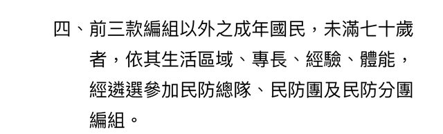 → ntnusleep : 第六條則是免參加民防編組之情形11/22 21:52