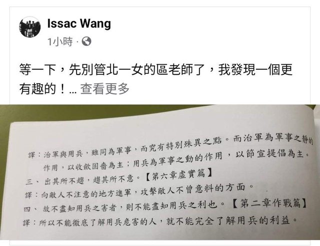 推 NewCop : 孫子兵法寫的基本上是放諸古今中外都適用的大原則, 12/08 20:48