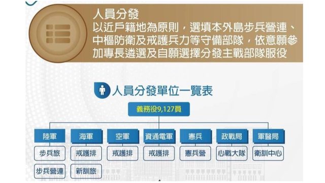 → chyx741021 : 國防部的說法,除了步兵營,一年義務役役主要分發 12/27 20:21