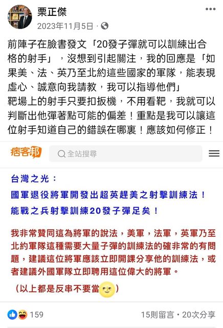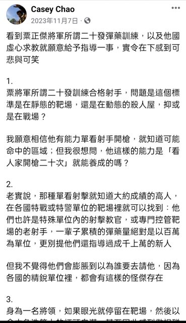 → HAYABUSA1207: 台灣退將:歐美射擊訓練是外行人做法 01/16 10:22