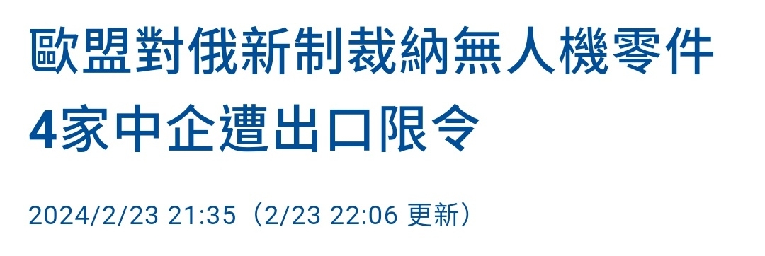 推 ChenWay : 歐盟制裁中國出售無人機零件給俄羅斯,這策略還不錯 02/24 01:51