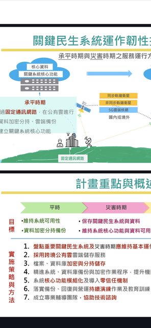 舉個例子「政府數位韌性-行政部門關鍵民生系統韌性方案」