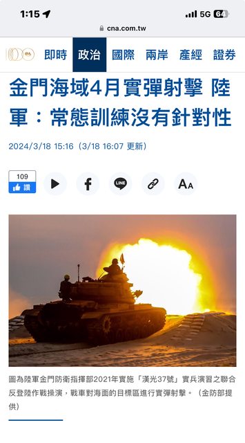 → afv : 金防部說是現在濃霧影響暫緩今日射擊,明日的射擊再 04/02 16:25
