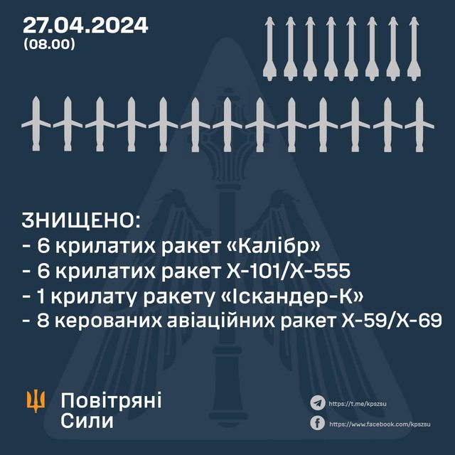 俄軍34 枚空基、地基和海基飛彈中有 21 枚被摧毀: