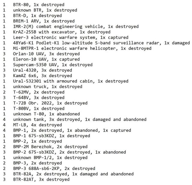 目視確認損失軍事裝備統計 2024.04.28 ~ 05.01