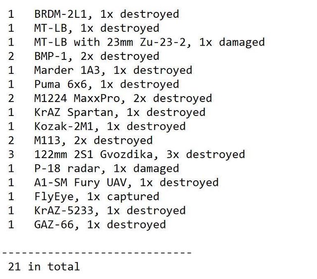 據稱俄軍已損失100多人。敵方裝備也遭到