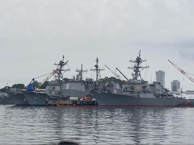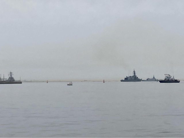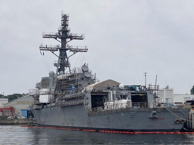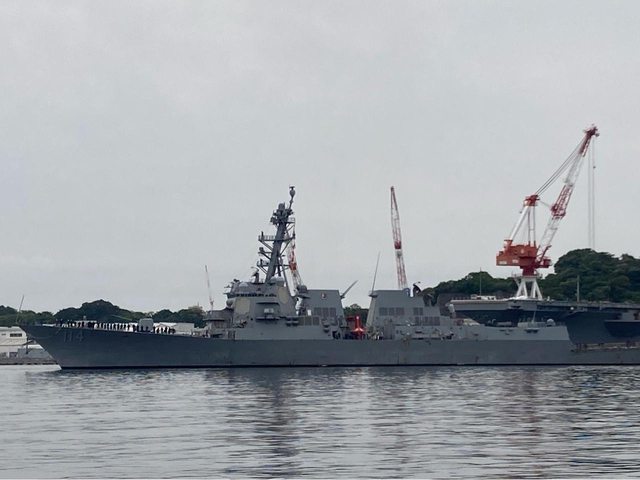 圖左方有一艘正要進港的伯克級