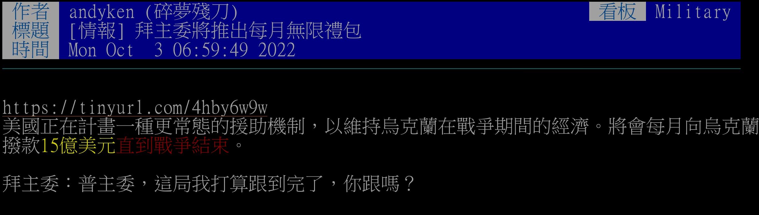 推 s952013 : 不急不急,我等著軍援打光還打不了半塊地 05/04 20:05