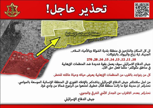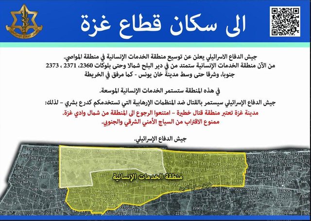 第一張傳單發給所有加薩居民:宣布擴大al-Mawasi的指定人道區