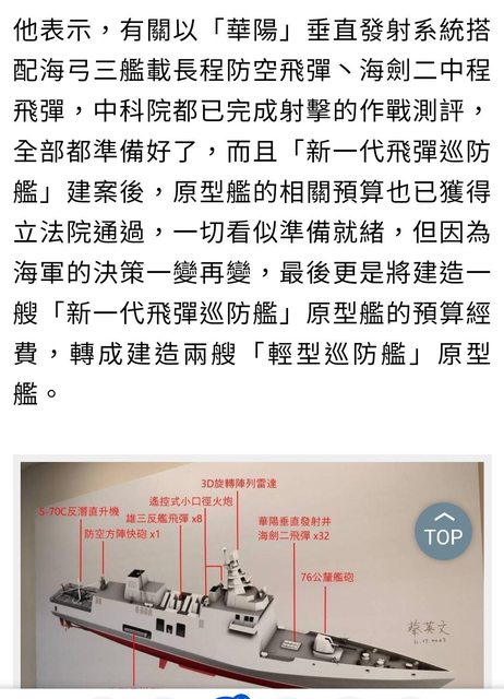 : 這講法似乎是在暗示海弓三上不了輕巡防艦。