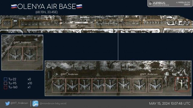 衛星影像(5 月 15 日)顯示 12 架 Tu-95MS、