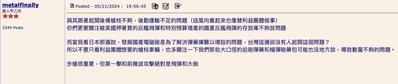 → jobli : 這種人還比較值得配服,不用考量軍事,直接嗆政治 05/21 23:06