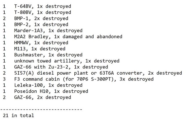 三輛 BMP 被摧毀,數量不詳,