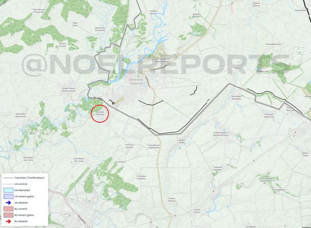 俄羅斯軍隊已越過蘇梅州的國際邊界,進入雷日夫卡村。由於這裡緊鄰泰特基諾,因此這很