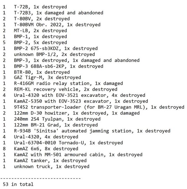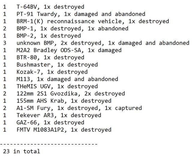 目視確認損失軍事裝備統計 2024.06.15 ~ 06.17