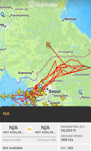 昨晚,一架 U-2S 在飛越朝鮮上空時忘記關閉其 ADS-B 接收器