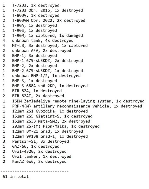 目視確認損失軍事裝備統計 2024.06.24 ~ 06.26
