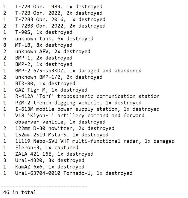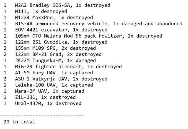 目視確認損失軍事裝備統計 2024.07.03 ~ 07.05