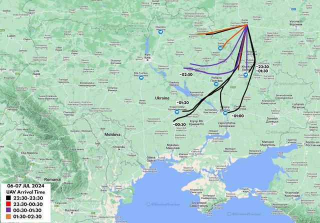 【俄羅斯 Shahed 無人機攻擊路線】