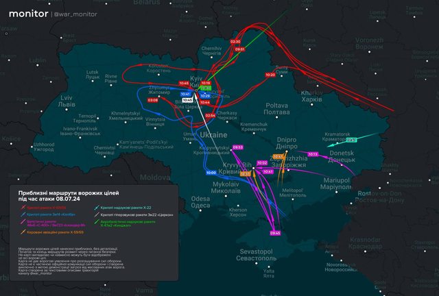 【俄羅斯 7 月 8 日飛彈攻擊路線】