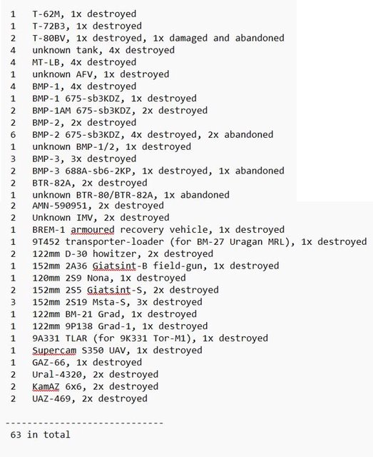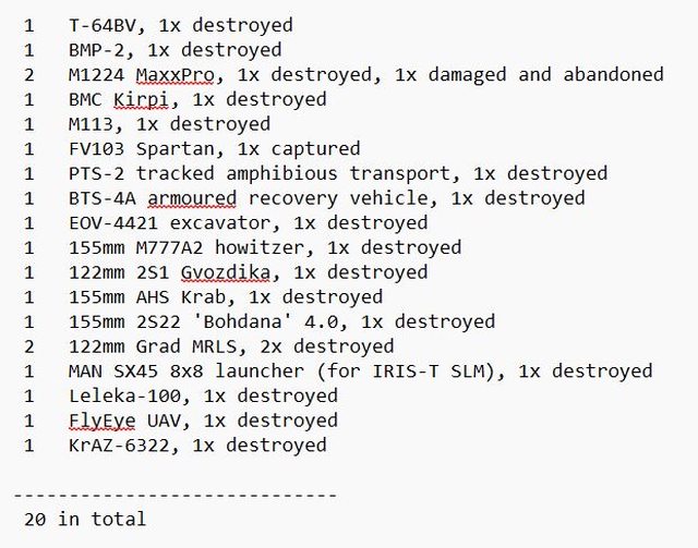 目視確認損失軍事裝備統計 2024.07.15 ~ 07.17