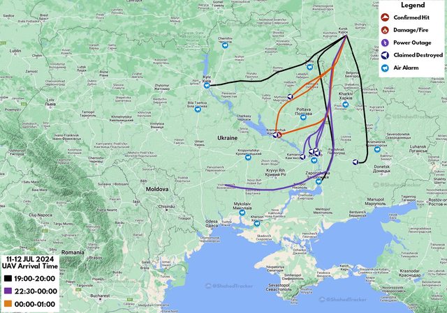 【俄羅斯 Shahed 無人機攻擊路線】