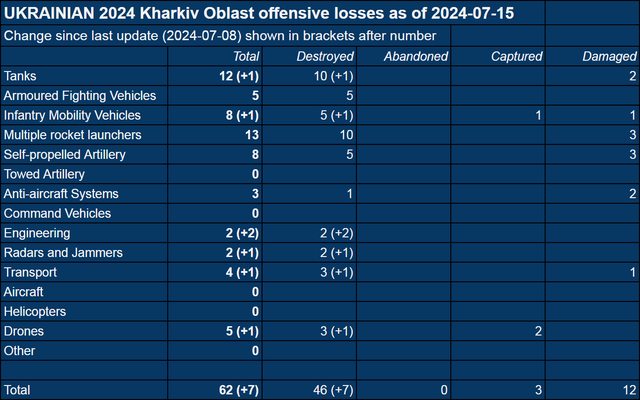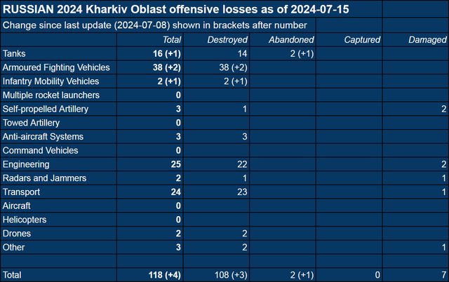 哈爾科夫截至2024年7月15日確認裝備損失