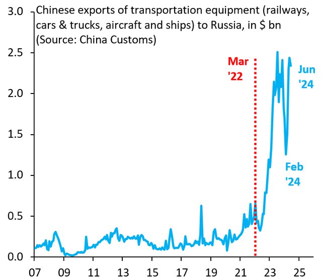 1.2024 年初,中國對俄羅斯的運輸設備出口
