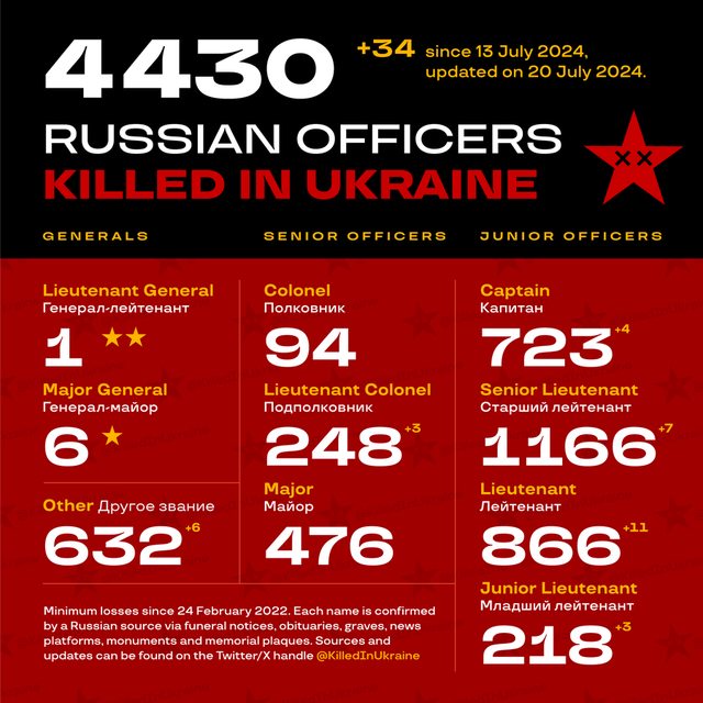 至少有4,430名俄羅斯軍官在烏克蘭被消滅