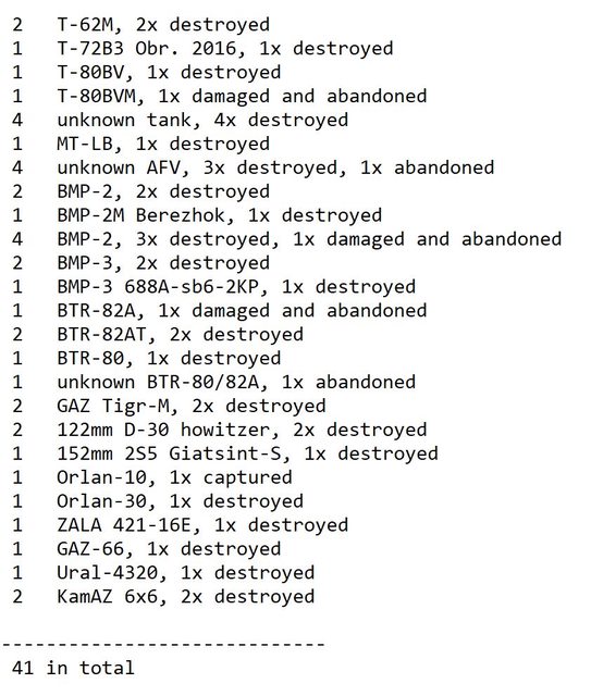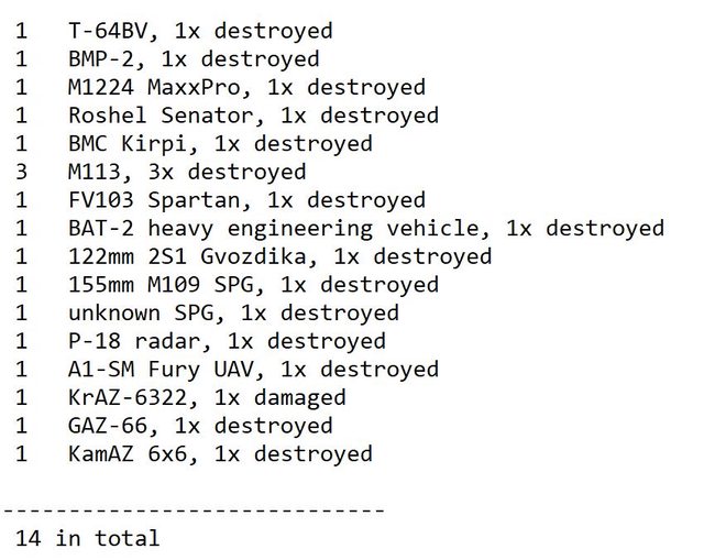 目視確認損失軍事裝備統計 2024.07.18 ~ 07.20