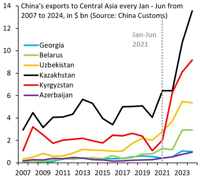 中國對俄羅斯的直接出口大幅增加,