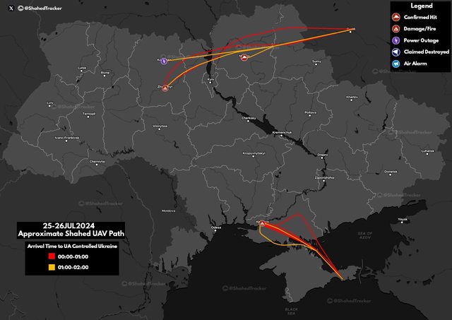 【俄羅斯 Shahed 無人機攻擊路線】