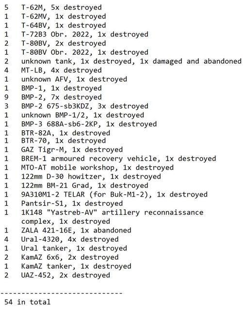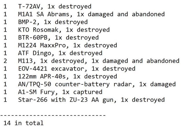 目視確認損失軍事裝備統計 2024.07.24 ~ 07.26