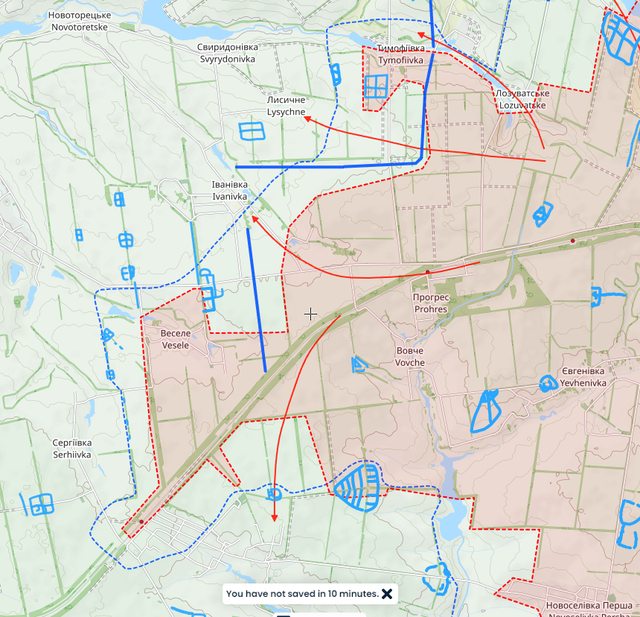 俄軍在 Rozdolivka不斷試圖向北推進,而在