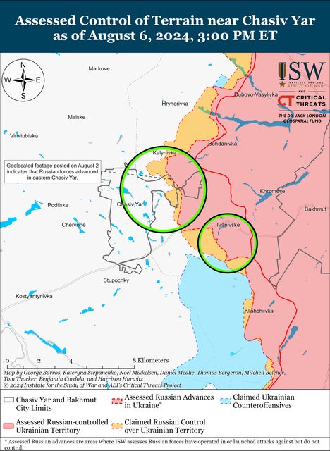 8月5日至6日,俄羅斯軍隊繼續在Chasiv Yar