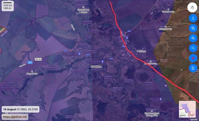 至於蘇賈東南部,烏克蘭軍隊完全控制