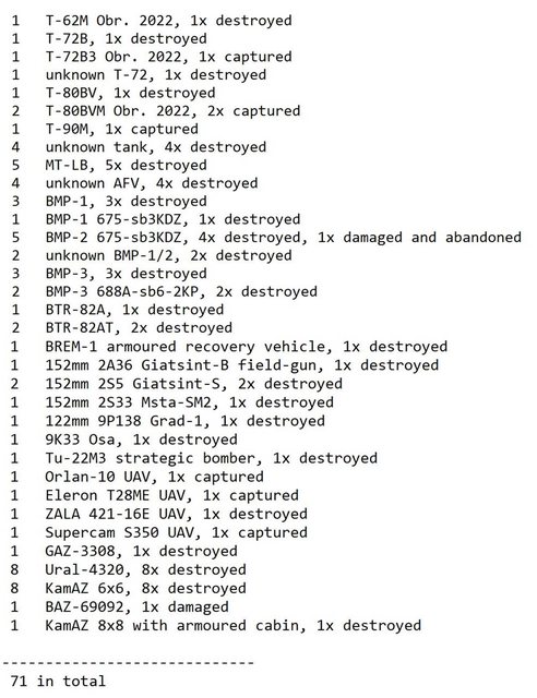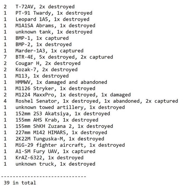 目視確認損失軍事裝備統計 2024.08.12 ~ 08.15