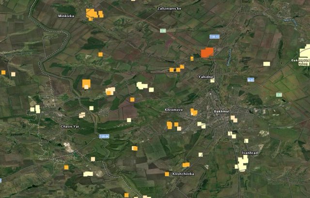 NASA FIRMS顯示俄羅斯佔領的巴赫穆特