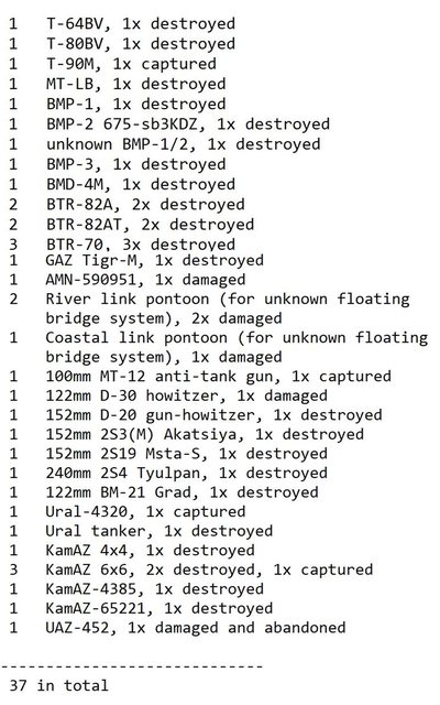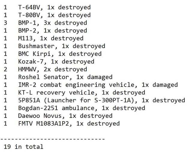 目視確認損失軍事裝備統計 2024.08.19 ~ 08.21