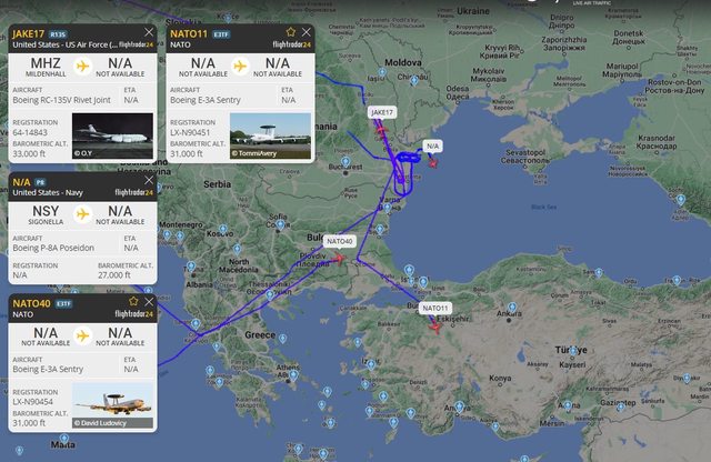 有幾架北約預警機、一架 P8、一架 RC-135,
