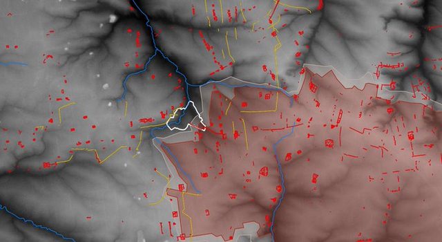 中部,河西有一座主山,俯瞰著該定居點。