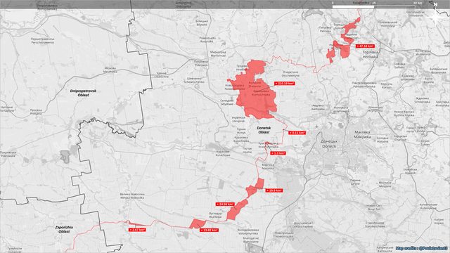 前沿的陣地呈現巨大的紅色斑點,顯示俄羅斯的