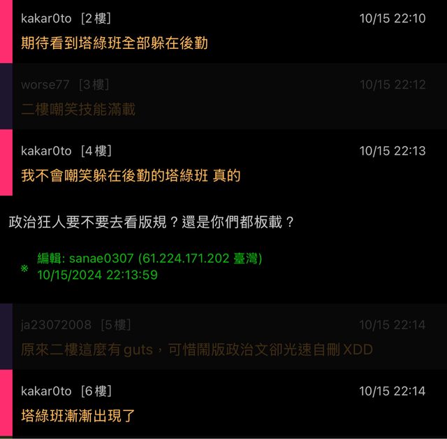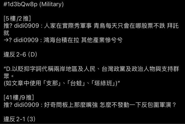 (如指稱板友為「藍白粉」、「蘇貞昌」、「某黨網軍」)