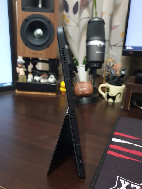 相比Tab S8系列的書本式,改成只有前蓋的部分,透過跟鍵盤一樣的磁吸連結