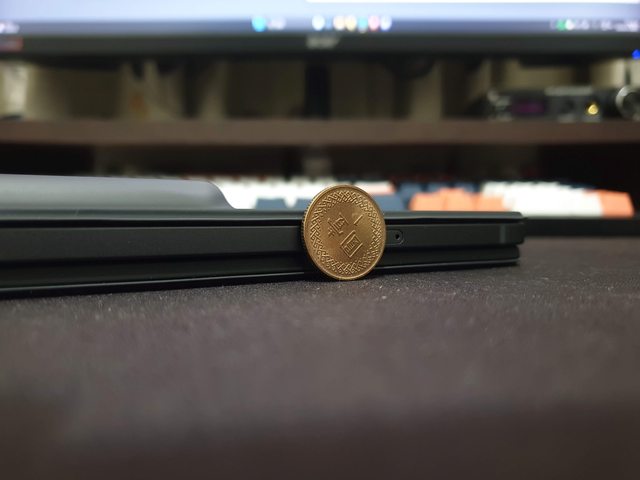 可是因為有轉軸,所以還是無法平放在桌上,會蹺蹺板